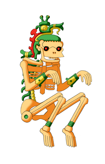 死や病気を司るマヤの冥界の神。 腐敗と悪臭を伝播し、また干ばつで作物が 育たないのはアープチの仕業だとされた。 その一方、賢い計略に簡単に騙される、頭 の弱い神としても知られている。 骸骨または腐乱死体の姿で描かれる。