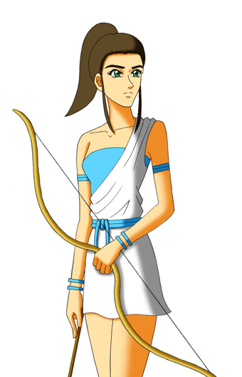 ゼウスの娘で、アポロンの双子の兄妹に当た る月の女神。また、狩猟・弓の女神でもあり、 お伴の妖精を連れて山野を駆け巡るのを楽し みとしている。 男嫌いで、純潔を守る事に関しては自他共に 厳しい。