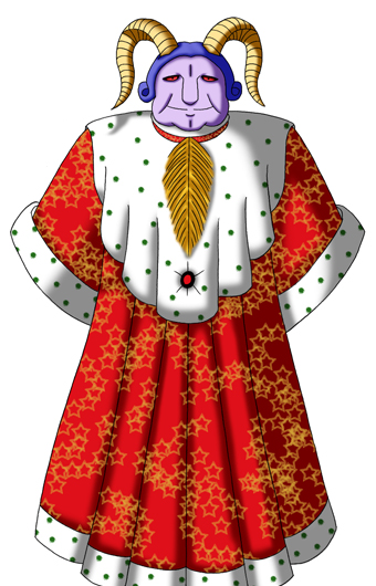 72の悪魔軍団を従えた強大な王。人に美徳の 指環を与え、数学、天文学、幾何学のあらゆる 技術を会得させる一方、夫婦仲を破壊する悪魔 としても知られる。 雄牛、人、雄羊の三つの頭を持ち、竜に乗って 現れる。