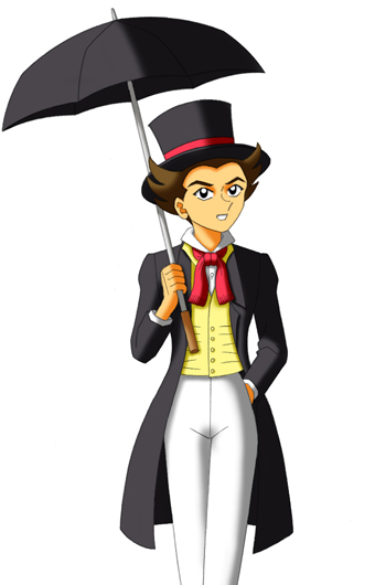 「ベリアル」を追うルシファーたちの前に突如 現れた謎の堕天使。自らを「下級堕天使」と 称しているが、その真偽は不明。 100回中99回の攻撃を吸収するという不思議 な傘「ギャンブレラ」を所持する。