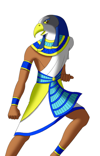 オシリスとイシスの息子で、両目が月と太陽 である天空神。ハヤブサの姿で表される。 王の地位を巡って、叔父のセトと80年に渡っ て争い続けた。 エジプトの国王は、地上でのホルスの化身 だと考えられていた。
