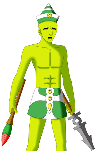 アステカの豊穣伸。 虚ろな目と新芽のような青々とした肌を持ち、 両手の棍棒を巧みに操る。 表皮がある程度のダメージを受けると、植物 の発芽のように、古い皮を脱ぎ捨て再生する 事ができる。